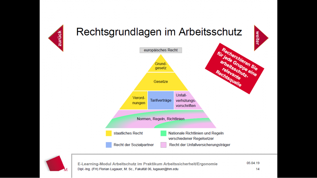 Das vorliegende Projekt zur Umsetzung von eLearning-Methoden im Praktikum Arbeitssicherheit/Ergonomie macht deutlich, dass damit eine signifikante Effizienzsteigerung in der Hochschullehre erzielt werden kann. Es zeigt aber auch, dass für die Erstellung eines Werkzeuges, wie dem hier dargestellten, beträchtliche zeitliche und personelle Ressourcen gebunden werden. Weiterhin wird klar, dass eine adäquate Infrastruktur (Mikrofon, Software, Lernplattform zum Verteilen) sowie das notwendige Fachwissen (z. B. Foliengestaltung, Wissen über Lernpsychologie etc.) vorhanden sein müssen, um eine ansprechende und nutzbringende Lernumgebung zu schaffen. Aus diesem Grund ist es dringend notwendig, einerseits den Lehrenden bei Bedarf ausreichend Ausbildungsmöglichkeiten anzubieten und andererseits die notwendigen technischen Ressourcen zu erhalten und zu erweitern.